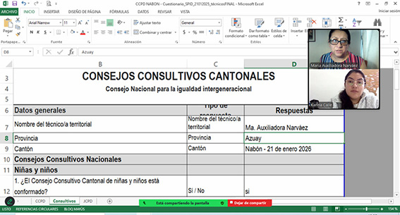 A través de nuestro equipo técnico en territorio, articulamos acciones con alcaldes y autoridades locales para evaluar los avances en la conformación de los organismos del Sistema de Protección Integral de Derechos: Consejos y Juntas Cantonales de Protección de Derechos y Consejos Consultivos Generacionales.