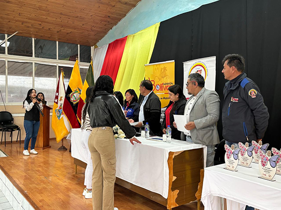 En el cantón Bolívar, provincia del Carchi, fuimos parte de la posesión de los Consejos Consultivos y las Defensorías Comunitarias. Además, se premió a las instituciones educativas que participaron con casas abiertas sobre la no violencia hacia la mujer.