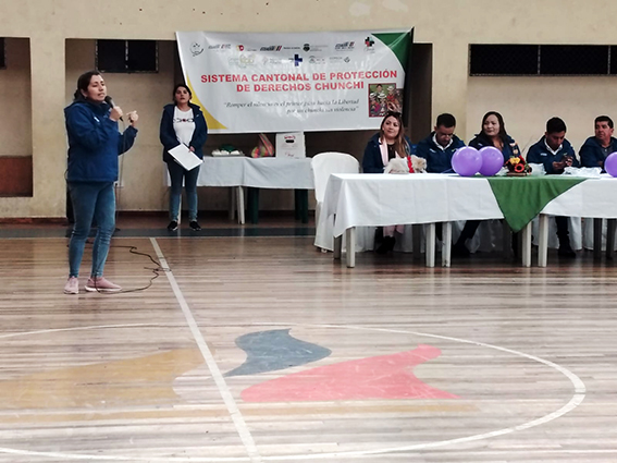 En el cantón Riobamba, provincia de Chimborazo, participamos, junto a la Defensoría del Pueblo, en un conversatorio dirigido a los servidores públicos del Gobierno Autónomo Descentralizado Municipal del cantón. El tema desarrollado fue la violencia hacia la mujer y los sistemas de protección. El evento fue organizado por el Consejo Cantonal de Protección de Derechos.
