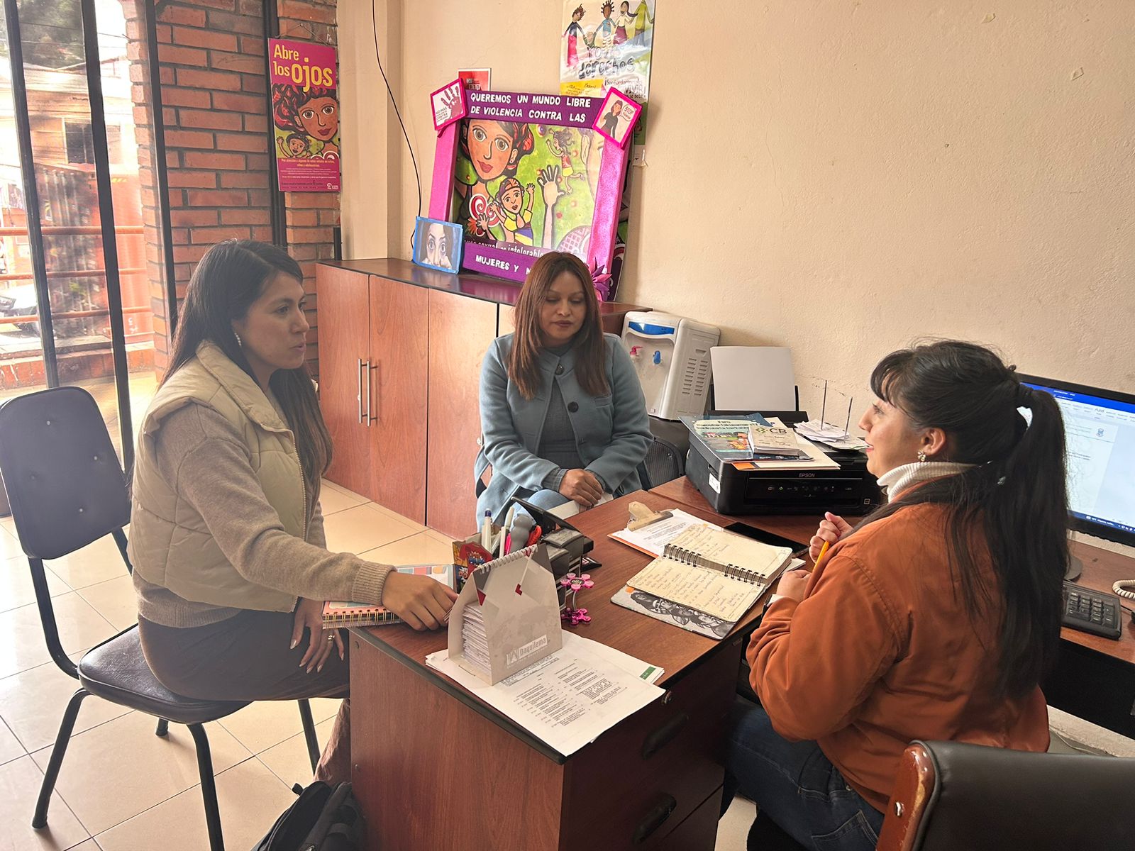 En Quilanga, participamos de la reunión de la mesa intersectorial convocada por el Consejo de Protección de Derechos, junto a representantes de los ministerios de Inclusión, Salud, Educación, la Junta Cantonal, Fundación Espacios y la Secretaría Ecuador Crece Sin Desnutrición, para abordar los casos de grupos prioritarios, firma de carta compromiso, entre otros. Además, trabajamos con integrantes de la JCPD, para articular varias actividades de capacitación en territorio con grupos focales en las parroquias del cantón, entre los temas se destaca la problemática de aumento de casos de embarazos en adolescentes y el seguimiento de los mismos.