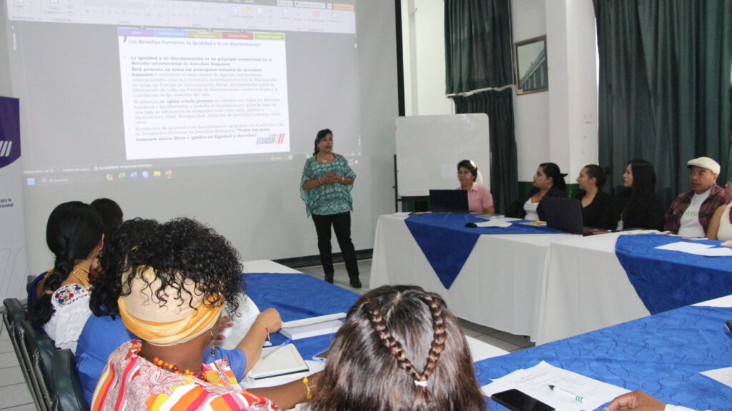 Junto a los titulares y representantes de los Consejos Nacionales para la igualdad y la Asociación de Municipalidades Ecuatorianas –AME-, expusimos los enfoques de igualdad y no discriminación, el análisis y ajuste de indicadores de igualdad y la batería de indicadores por Consejo, todo esto como información previa, para que los GAD, puedan elaborar sus agendas, cronogramas de PDYOT y borradores de PDYOT, donde se transversalizarán los 5 enfoque de igualdad y no discriminación (generacional, género, discapacidades, discapacidades, pueblos y nacionalidades).