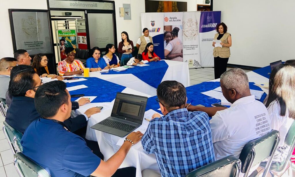 En el cantón Mira, provincia de Carchi, el secretario técnico y la directora técnica del CNII, Walter Chamba y Xiomar Torres, participaron del taller de asistencia técnica conjunta y articulada, para el análisis y ajuste de indicadores de igualdad de los Planes de Desarrollo y Ordenamiento Territorial –PDYOT-, de los GAD Cantonales de la Regional 1.