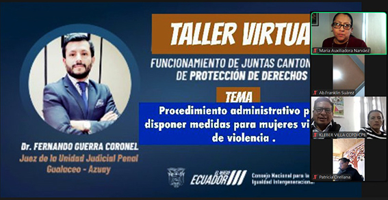En la provincia del Azuay, y de manera telemática, realizamos el Taller de Fortalecimiento de Juntas y Consejos Cantonales de Protección de Derechos (JCPD y CCPD), en articulación con el Consejo de la Judicatura.