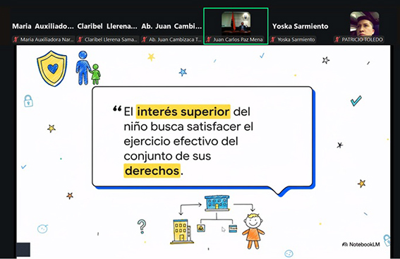 Módulo 2: Derechos de Niñas, Niños y Adolescentes. El espacio de formación concluyó con el tercer tema, a cargo del Dr. Juan Carlos Paz, Juez de la Unidad Judicial de la Familia, Mujer, Niñez y Adolescencia.