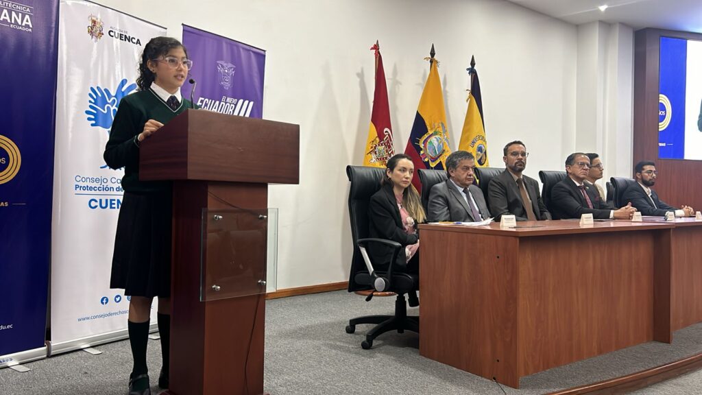 “La infancia es una etapa maravillosa y es importante involucrarnos para hablar de la protección de derechos de niñas, niños y adolescentes, tenemos un marco normativo prioritario, nacional e internacional que destaca la necesidad de contar con especificidad para la garantía de nuestros derechos”, afirmó Dulce María Urdiales, estudiante de la Unidad Educativa La Salle del cantón Azogues y ex integrante del Consejo Consultivo, quien además recordó que el Estado tiene una responsabilidad asumida formalmente desde 1990, para proteger a este grupo poblacional y así también pidió que se establezcan políticas públicas de atención integral y que se determinen claramente las responsabilidades que tienen las entidades rectoras en la materia.