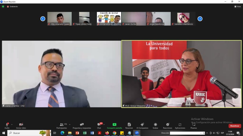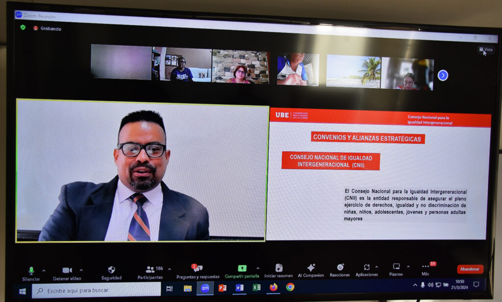Equipos técnicos del CNII y de la Universidad Bolivariana del Ecuador, trabajaron la propuesta de articulación interinstitucional y vinculación con la sociedad para abordar la inclusión de las personas con discapacidad en el marco de los sistemas locales de protección de derechos y la promoción de espacios intergeneracionales inclusivos. Además, la realización del webinar «Diversidad, inclusión y sociedad», en conmemoración del día del Síndrome de Down, 21 de marzo 2024.