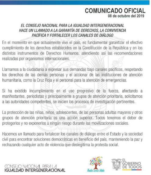 COMUNICADO: El CNII hace un llamado a la garantía de derechos, la convivencia pacífica y fortalecer los canales de diálogo