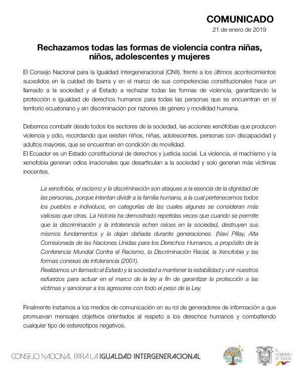 COMUNICADO: Rechazamos todas las formas de violencia contra niñas, niños, adolescentes y mujeres