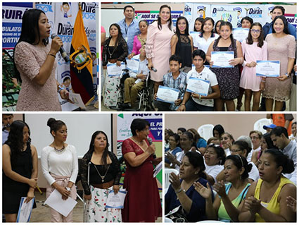 Kathy Cornejo, vicealcaldesa de Durán, en representación de la presidenta de CCPD-D, fue quien dio lectura al diálogo de compromiso de las nuevas directivas de consejos consultivos, quienes recibieron un certificado en el que se constata el cargo y período para el cual fueron electos.