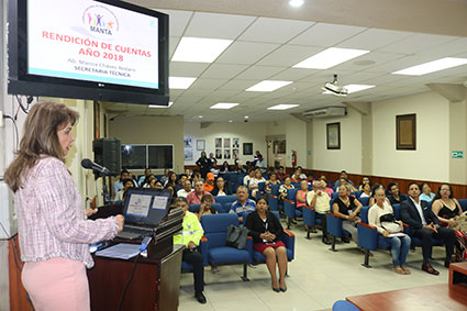 Marcia Chávez Rodans, Secretaria Técnica del CCPD-Manta, dio un informe de las actividades efectuadas dentro de su gestión para el período 2018. Así mismo respondió las preguntas planteadas por la asamblea de Participación Ciudadana.