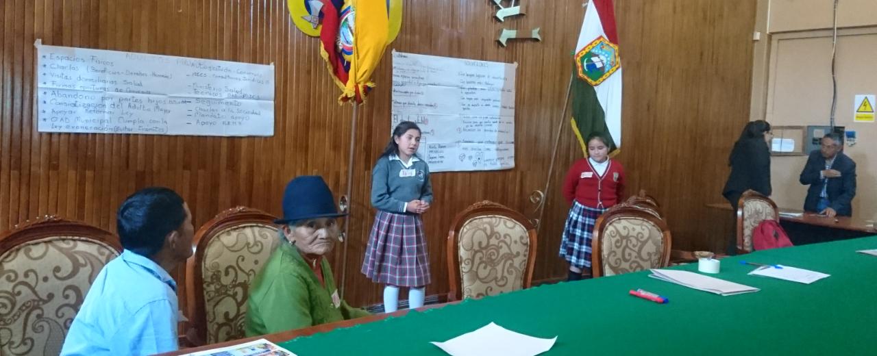 A través de un taller con los consejos consultivos de niñas, niños, adolescentes, jóvenes y personas adultas mayores, en el cantón Pelileo, se priorizaron las preocupaciones de estos grupos generacionales, para transmitirlo a las y los candidatos a la alcaldía, a través de mandatos que serán entregados.