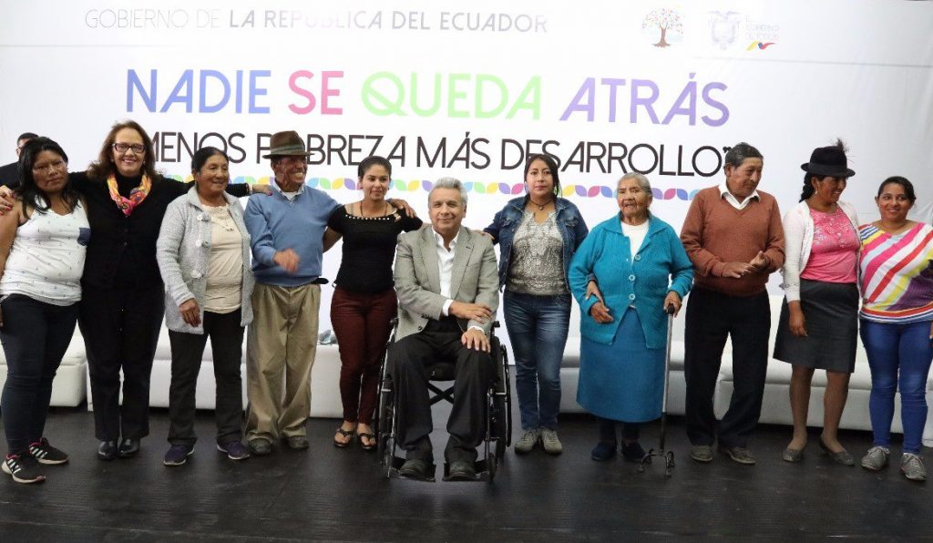 El objetivo de realizar este diálogo con los nuevos usuarios de los Bonos de Desarrollo Humano fue visibilizar el esfuerzo que hace el Gobierno Nacional hacia los sectores en condiciones en extrema pobreza. Bajo el lema “Juntos Contra La Pobreza”, nueve personas que reciben este bono y que interactuaron en el panel de diálogo con el Presidente Lenin Moreno, compartieron su experiencia con los asistentes: “El bono me ha permitido lograr la manutención de mi familia”, “Con el bono apoyo la educación de mis hijos”, “He podido alimentar a mis hijos”, se escucharon, así también expresaron que les ha ayudado para poder empezar actividades de emprendimiento económico.