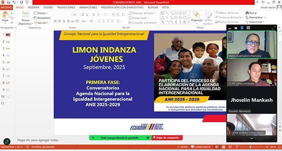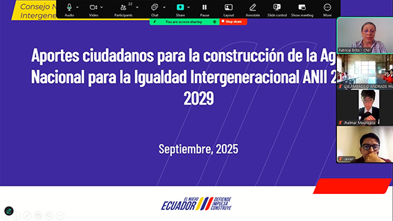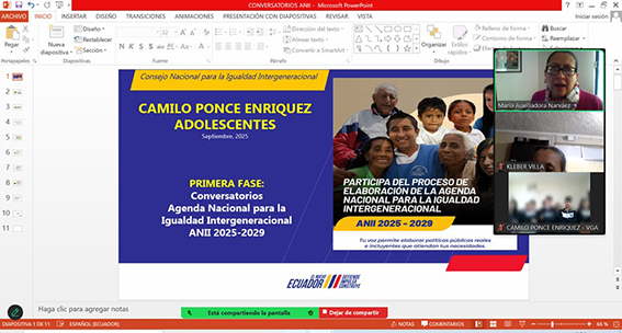 En el marco del proceso de construcción participativa de la Agenda Nacional para la Igualdad Intergeneracional (ANII) 2025–2029, se llevó a cabo un conversatorio virtual con adolescentes de los cantones de Gualaceo y Chordeleg, en la provincia de Azuay.