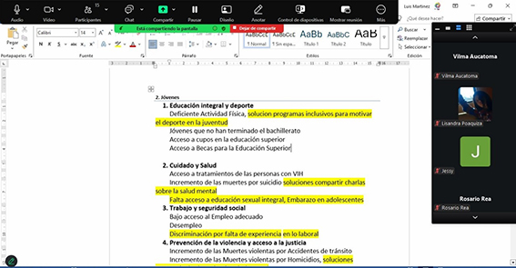 Este proceso, realizado en modalidad virtual, tuvo como objetivo principal identificar las problemáticas que afectan a su grupo generacional y recoger aportes y propuestas de solución desde este grupo de atención prioritaria.