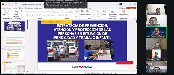 En la provincia de Manabí, y de manera virtual, socializamos la estrategia de prevención, atención y protección dirigida a personas en situación de mendicidad y trabajo infantil.