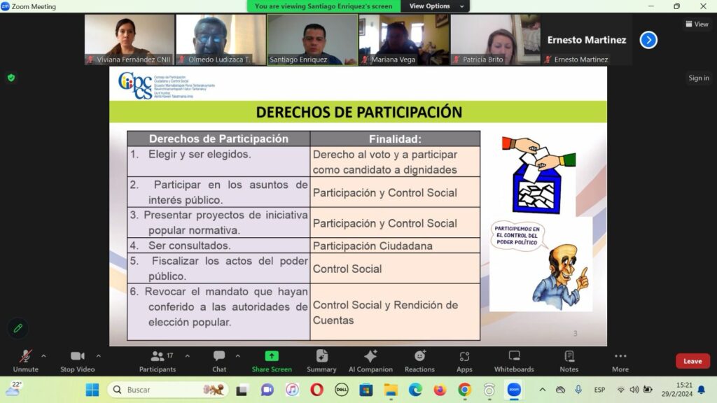 Se desarrollaron este 29 de febrero 2024, el 1er. y 2do. módulo de la Escuela de Ciudadanía denominada “Mi participación es un derecho a ejercerlo con igualdad y no discriminación”, que tiene como objetivo capacitar sobre los espacios y mecanismos de participación establecidos en la ley.