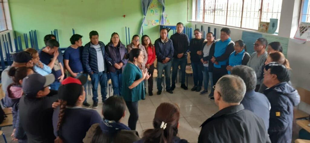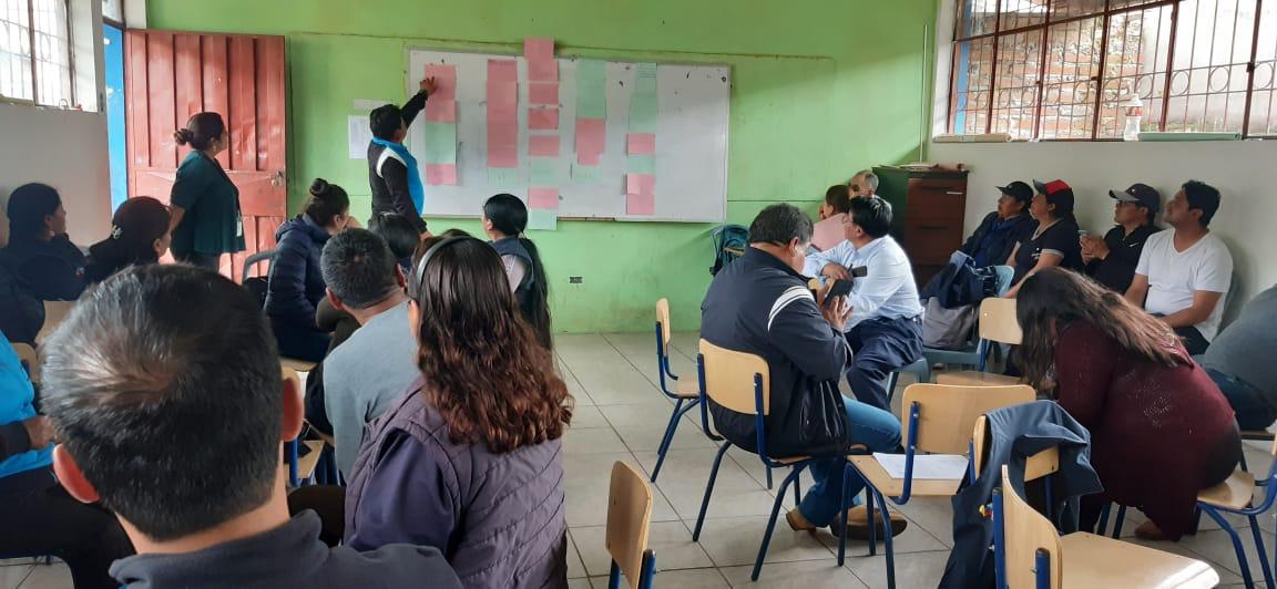 El equipo territorial del CNII facilitó el taller en el marco del fortalecimiento del sistema de protección de derechos en coordinación con el Grupo Social Fondo Ecuatoriano Populorum Progreso – FEPP, Ministerio de Educación – MINEDUC y Consejo Cantonal de Protección de Derechos – CCPD, dirigido a docentes de las Unidades Educativas de la parroquia Cebadas, en el cantón Guamote, provincia de Chimborazo.
