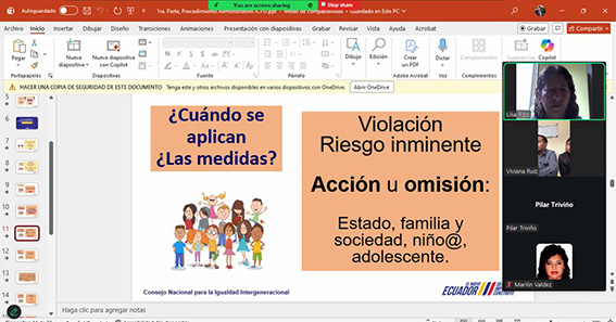 Brindamos una capacitación vía telemática sobre el procedimiento administrativo para niñas, niños y adolescentes, dirigida a los nuevos miembros de la Junta Cantonal de Protección de Derechos (JCPD) de Balzar.
