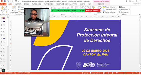 En conjunto con el Consejo Cantonal para la Protección de Derechos, se han mantenido reuniones para definir herramientas que permitan elaborar una guía de servicios o directorio por grupo de atención prioritaria. Asimismo, se trabaja en la socialización del Sistema de Protección de Derechos (SPID), la importancia de construir redes de protección integral y la presentación del diagnóstico del sistema.