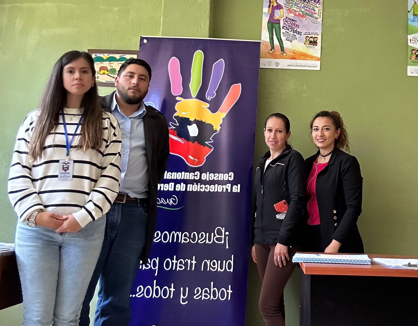 En el cantón Guachapala, provincia del Azuay, el CNII brindó asistencia técnica a los nuevos miembros de la Junta Cantonal de Protección de Derechos y a la secretaria ejecutiva del Consejo Cantonal de Protección de Derechos, sobre los procedimientos administrativos de niñez y adolescencia.