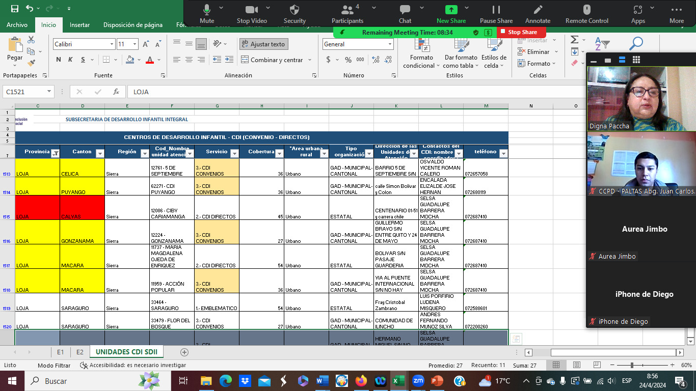 En Loja trabajamos la capacitación con los Consejos de Protección de Derechos de: Macará, Zapotillo, Puyango y Paltas, sobre las herramientas y el levantamiento de información, para el proceso de observancia a la política pública de desarrollo infantil. Se socializaron los instrumentos a utilizarse, en el proceso.