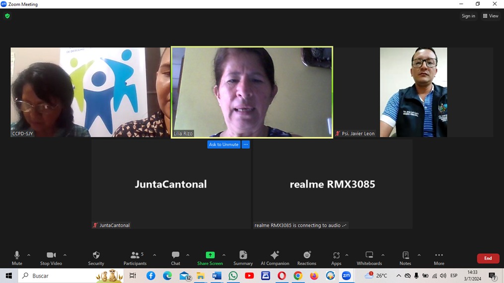 A través de reunión telemática, se dio apoyo y orientaciones técnicas a las secretarias ejecutivas del Consejo Cantonal de Protección de Derechos – CCPD de los cantones Colimes y Yaguachi, provincia de Guayas y al equipo técnico de la secretaria ejecutiva del Consejo Cantonal de Protección de Derechos del cantón La Libertad, provincia de Santa Elena.