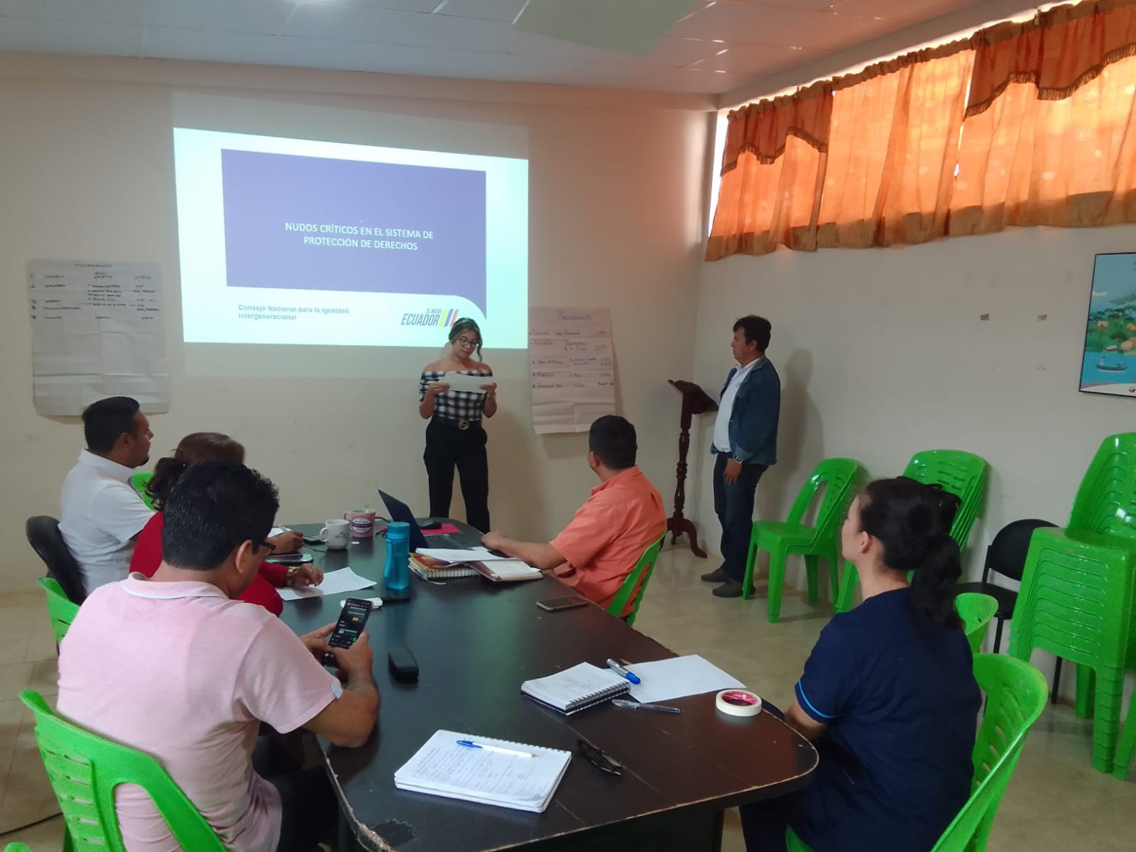 En el cantón Santa Ana, provincia de Manabí el equipo del CNII brindó asistencia técnica a los miembros de las Juntas Cantonales de Protección de Derechos – JCPD y a los equipos técnicos de los Consejos Cantonales de Protección de Derechos – CCPD sobre el procedimiento administrativo en relación a las vulneraciones más recurrentes que las JCPD reciben en el cantón.
