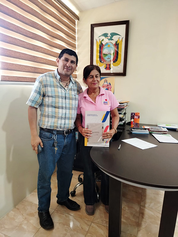 En el cantón Las Lajas, provincia de El Oro, brindamos asistencia técnica a Eduardo Romero, síndico del GAD Municipal, y a Joseth Cañar, jefe de Talento Humano, sobre la conformación y el funcionamiento del Consejo y la Junta Cantonal de Protección de Derechos.