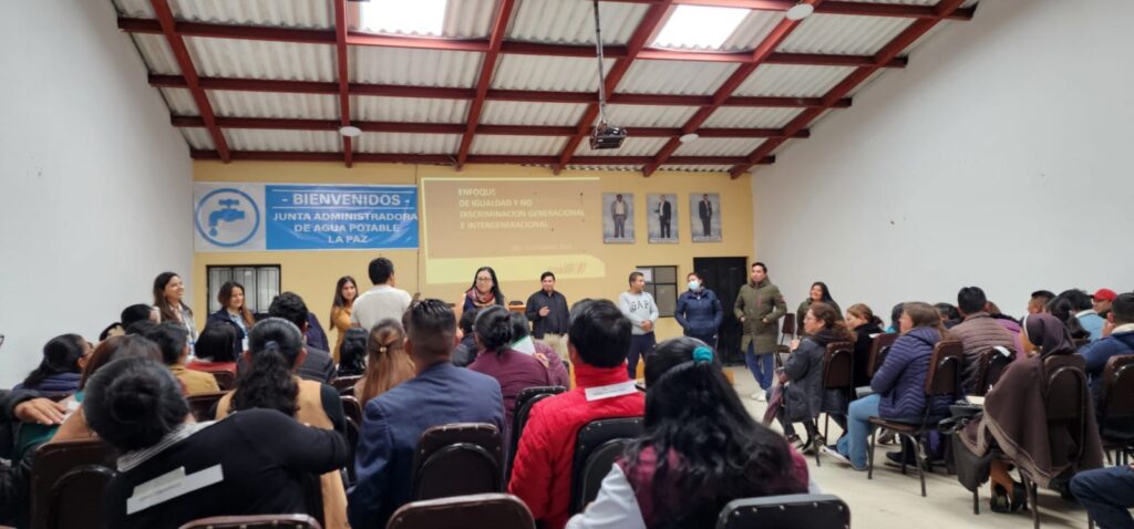 El equipo del CNII en el cantón Oña, provincia de Azuay, trabajó en el enfoque de igualdad y no discriminación generacional e intergeneracional, junto a varios miembros parte del sistema de protección de derechos.