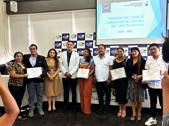 En el cantón Pastaza se llevó a cabo el acto de posesión del Consejo Consultivo de Jóvenes. Durante el evento, el alcalde Germán Flores Meza, quien preside el Consejo de Protección de Derechos, tomó juramento a los jóvenes electos. Ellos asumen el reto de representar a sus pares y promover espacios de participación para fortalecer las políticas en favor de la juventud pastacense.
