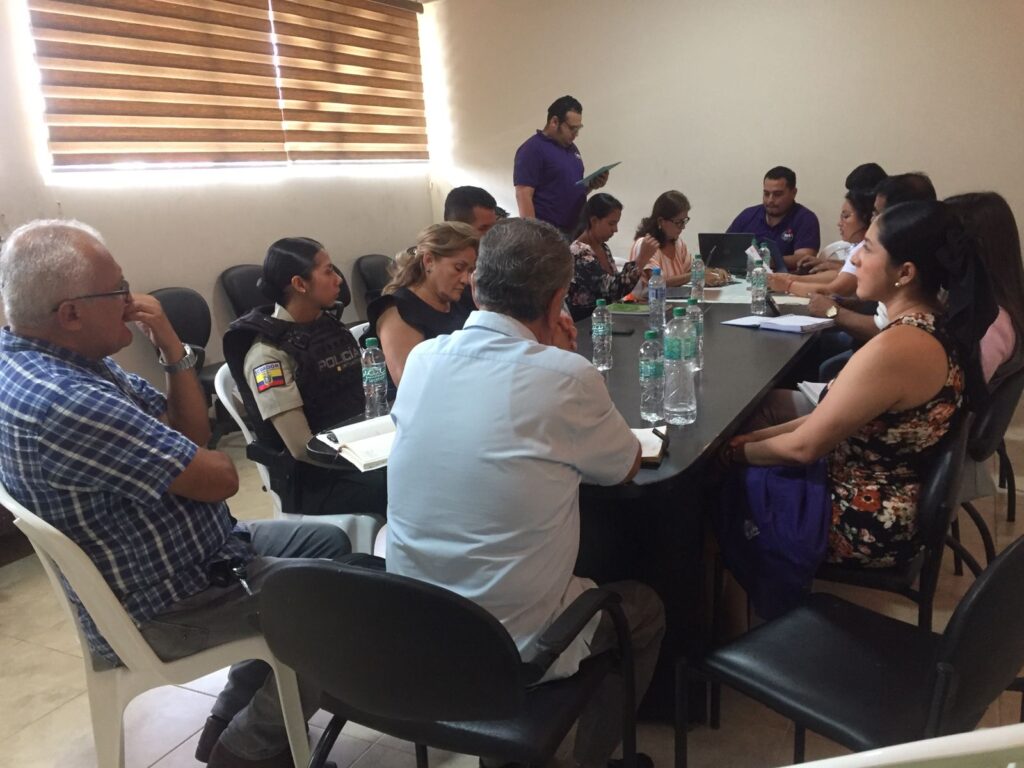 Con la participación del GAD municipal, Comisión de Igualdad de Género, Junta Cantonal de Protección de Derechos, Policía, Fiscalía, Judicatura, Dirección del Ministerio de Salud Pública y World Vision, continuamos resolviendo los nudos críticos que afectan al funcionamiento de los organismos del sistema cantonal de protección de derechos, en relación a causas de violencias en contra de niñez, adolescencia, mujeres y personas adultas mayores.