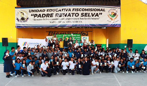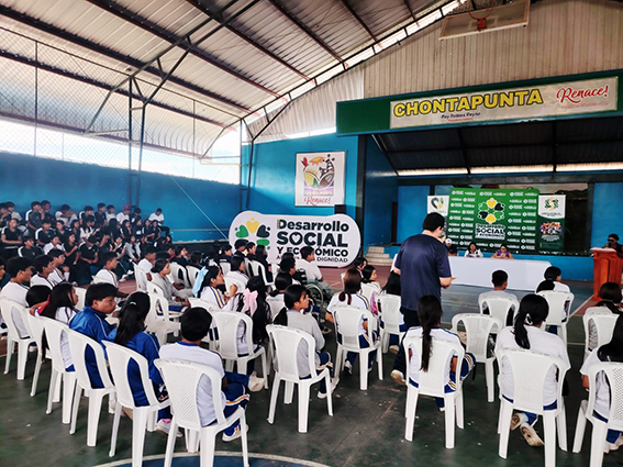 Hemos participado en dos eventos parte de este proyecto: en la parroquia Puerto Cruz Chicta, localizada al margen derecho del río Napo, y en la parroquia Chonta Punta, que contaron con la presencia de 230 estudiantes.