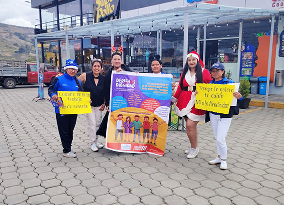 En el cantón Colta, provincia de Chimborazo, participamos en el lanzamiento y socialización de la campaña ‘Derechos con Dignidad’. La iniciativa incluyó jornadas de sensibilización en varios sectores del cantón para prevenir el trabajo infantil y la mendicidad, mediante mensajes dirigidos a la ciudadanía sobre esta problemática. Durante la jornada, se realizaron abordajes territoriales y actividades de difusión.
