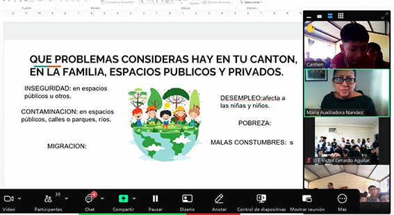 En el cantón Camilo Ponce Enríquez, provincia de Azuay, participamos vía telemática en el Encuentro con Niñas, Niños y Adolescentes.