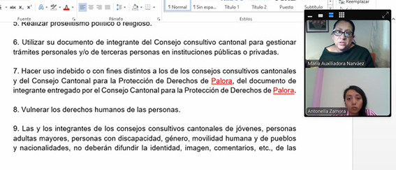 Esta asistencia se realizó vía telemática y se centró en la elaboración de la propuesta de reglamento para la conformación de los Consejos Consultivos.