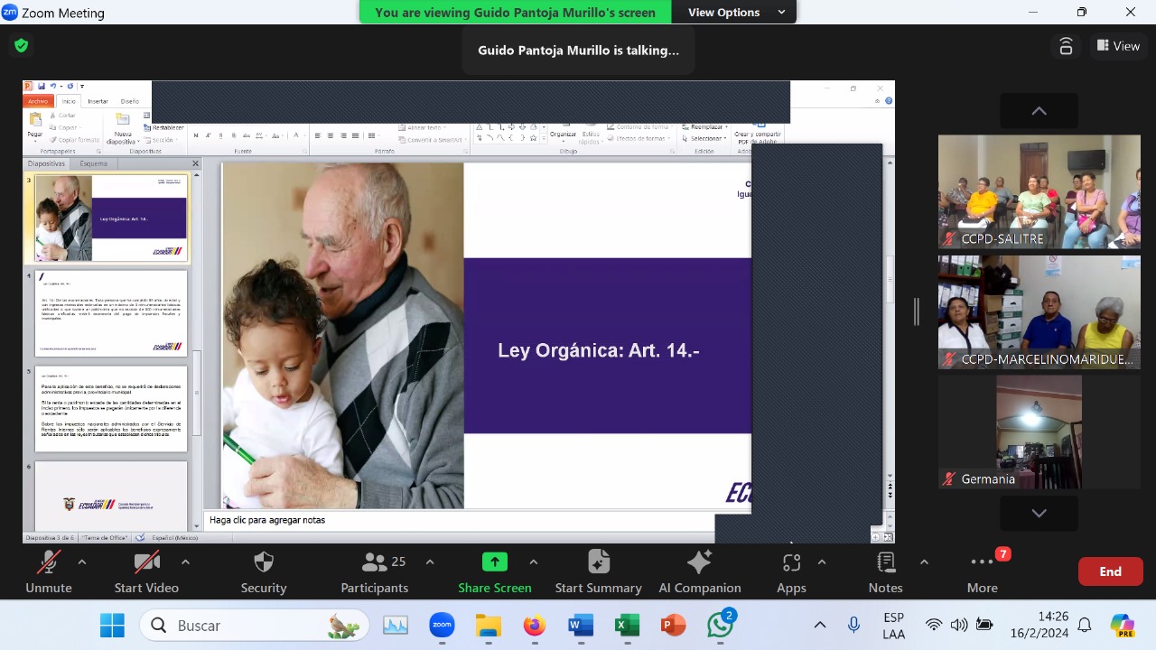 Los Consejos Consultivos de Personas Adultas Mayores de Salitre, Marcelino Maridueña, Yaguachi, Naranjal, Balao, Isidro Ayora, El Triunfo y Balzar, de la provincia de Guayas, participaron en la socialización de las disposiciones de la Ley Orgánica de las Personas Adultas Mayores, en cuanto a las exoneraciones de pago del impuesto predial, establecido en el artículo 14.