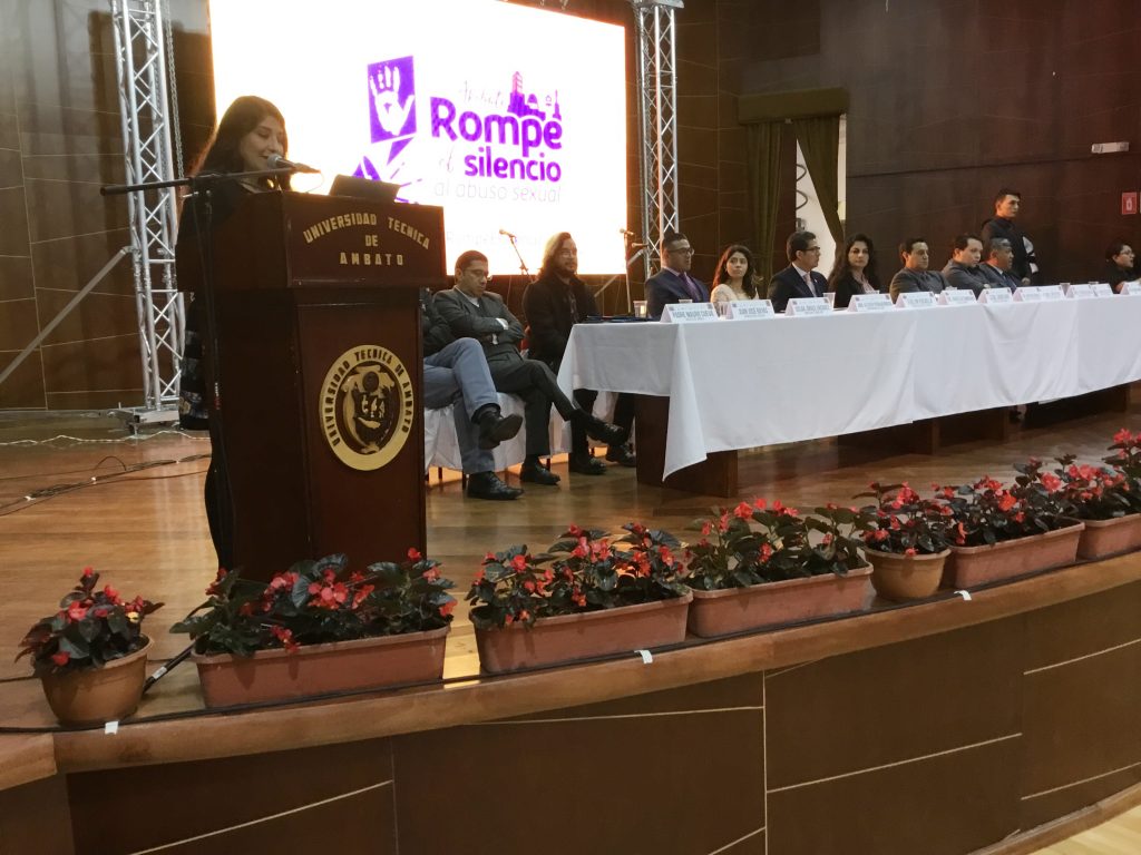 Con la participación del Alcalde de Ambato, Javier Altamirano, y delegados del Ministerio de Educación, del Ministerio de Inclusión Económica y Social, de la Secretaría de Derechos Humanos, el Consejo Nacional para la Igualdad Intergeneracional y de las iglesias católica y evangélica se desarrolló el evento en la Universidad Técnica de Ambato, mismo que después de escuchar los testimonios de sobrevivientes de abuso sexual, se comprometieron a trabajar de manera conjunta para prevenir así como para remediar y restituir los derechos de las víctimas.