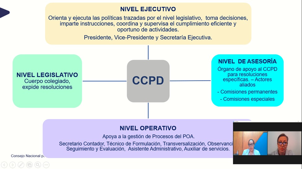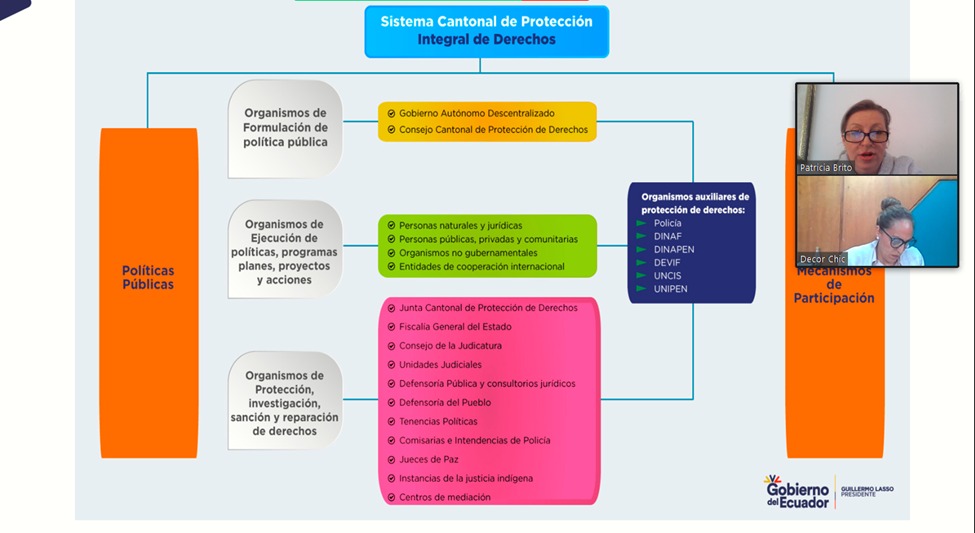 En coordinación con la Secretaría de Planificación en la Provincia de Morona Santiago se mantuvo reunión de trabajo, para brindar asesoría técnica sobre la organización e implementación del Sistema de Protección, la estructura del Consejo Cantonal de Protección de Derechos -CCPD- y sus funciones en el marco de sus atribuciones que deben estar recogidas y definidas en el orgánico funcional y de igual manera de la Junta Cantonal de Protección de Derechos -JCPD-, eso permitirá que estos organismos cumplan con sus competencias, para el funcionamiento articulado y eficiente del sistema de protección local frente a los casos de vulneración de derechos.