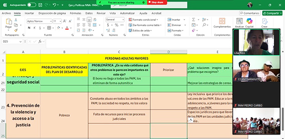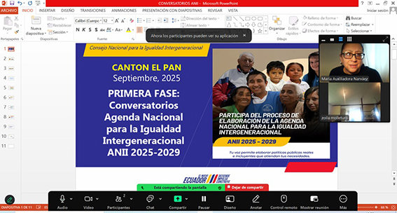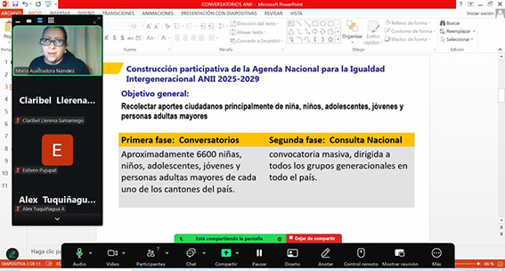Continuamos el proceso participativo para la construcción de la Agenda Nacional para la Igualdad Intergeneracional (ANII 2025–2029) mediante conversatorios territoriales realizados vía telemática. Estos encuentros se enfocaron en la identificación de problemáticas y propuestas de solución desde los distintos grupos de atención prioritaria.