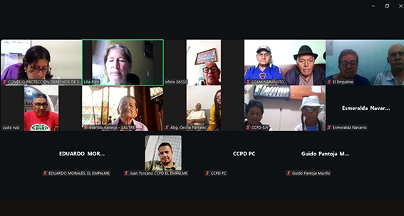 En la provincia del Guayas, trabajamos vía telemática con las personas adultas mayores de los cantones El Empalme, Colimes, Salitre, Pedro Carbo, Naranjito y Yaguachi.