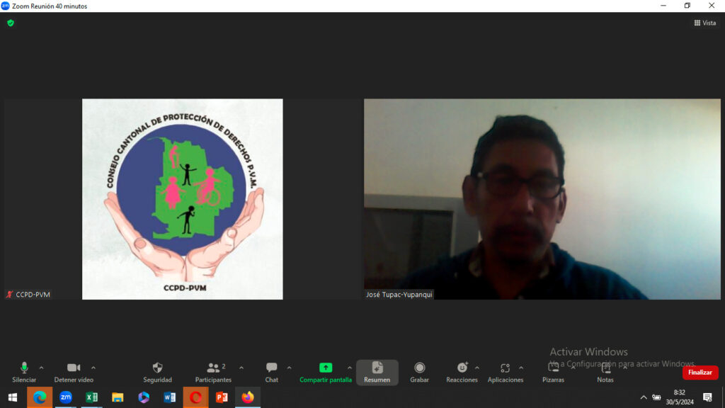 El equipo del CNII mantuvo reunión telemática con el secretario técnico del Consejo Cantonal de Protección de Derechos – CCPD de Pedro Vicente Maldonado, para ingresar las últimas encuestas correspondientes al Centro de Desarrollo Infantil (CDI) Virgen de Fátima, como parte de la ejecución del proceso de observancia nacional.