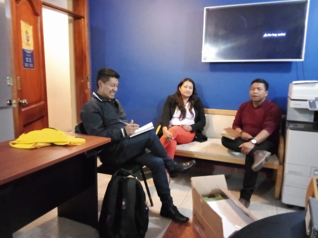 En Guamote, trabajamos con el equipo de la Secretaria Ejecutiva del CCPD y de la Junta Cantonal de Protección de Derechos -JCPD-, en el marco del fortalecimiento del Sistema de Protección. Con el CCPD se trabajó el proceso de fortalecimiento de los Consejos Consultivos Cantonales de Niñez, Adolescencia, y Jóvenes, electos en el mes de marzo, estableciendo un ciclo de talleres previos a su posesión, con la finalidad de fortalecer la comprensión del rol de estos mecanismos de participación en el sistema de protección y su relación con el CCPD.