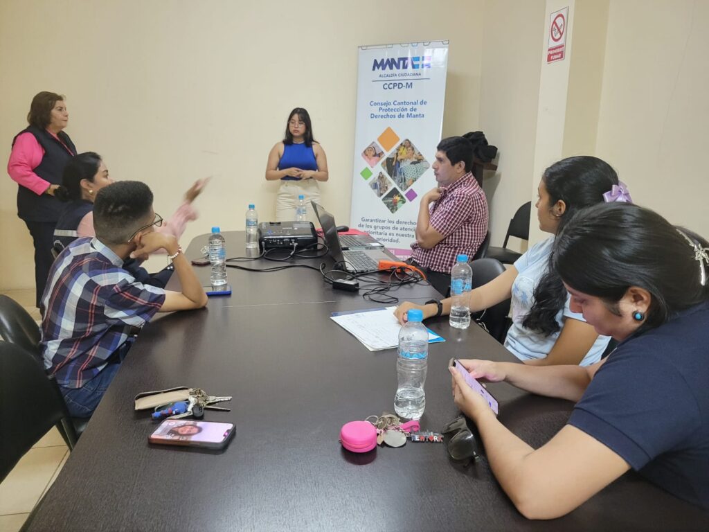 En Manta, trabajamos en las acciones de comunicación, junto a la consejera del Consejo Consultivo de Jóvenes, Maeva López, sobre el Reglamento de la Ley de Juventud, quien manifestó que una vez esté publicado el reglamento en el registro oficial se iniciará a finales de mayo con la socialización a nivel zonal. En Manta se está planificando un proceso de formación con jóvenes para tratar temas de derechos humanos, liderazgo social, políticas públicas para la juventud y los enfoques de igualdad q se hará mediante una plataforma diseñada por el GAD municipal del área de voluntariado y el CCPD.