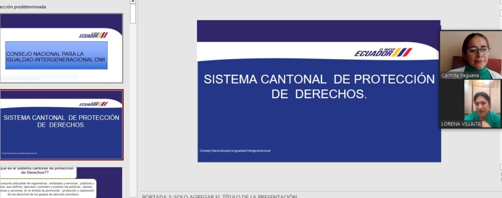 En Nangaritza, brindamos inducción a la nueva secretaria ejecutiva del Consejo de Protección de Derechos, Lorena Jakeline Villalta, una mujer líder en el cantón con experiencia como ex concejal y secretaria del CCPD. En la jornada se analizaron estrategias para la articulación con organismos del sistema y la coordinación interinstitucional, como: consejos consultivos y funcionarios del GAD. Además, se proporcionaron directrices para el seguimiento del cumplimiento de la normativa y delinearon actividades. Se enfatizó la importancia de formular, observar, dar seguimiento y evaluar las políticas públicas de protección integral, con especial énfasis en los principios intergeneracionales, de inclusión y no discriminación.