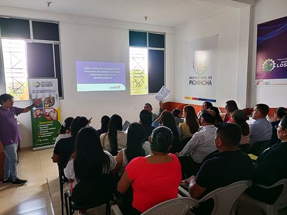 Junto al Ministerio de Educación, Deporte y Cultura, facilitamos un taller en la provincia de Pichincha sobre las Rutas de Protección de Derechos en el Sistema Educativo. El evento reunió a los equipos de los Departamentos de Consejería Estudiantil (DECE) y las Juntas Cantonales de Protección de Derechos (JCPD) de San Miguel de los Bancos, Pedro Vicente Maldonado y Puerto Quito. Se acordó coordinar con los DECE y cada JCPD para realizar el seguimiento y revisión conjunta de todos los casos de protección y restitución de derechos de niños, niñas y adolescentes en el ámbito educativo.