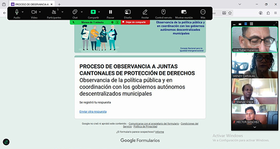 Adicionalmente, se realizó vía telemática el levantamiento de información a los miembros de la Junta Cantonal de Protección de Derechos de Putumayo en la provincia de Sucumbíos.