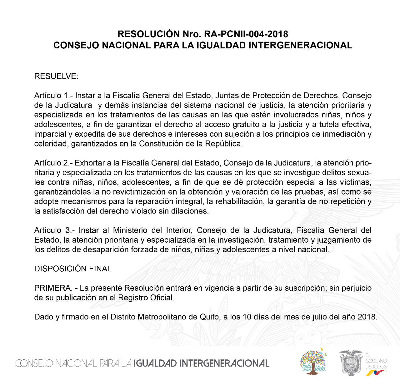 El CNII enfatiza la importancia de esta resolución, con el objetivo de que se garanticen los derechos de niñas, niños y adolescentes.