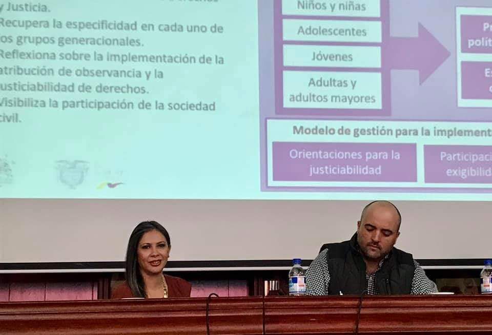 Grace Vásquez, Directora Técnica del CNII presentó las políticas públicas de la Agenda Nacional para la Igualdad Intergeneracional -ANII-; Patricio Trujillo, Asesor, presentó el rol de los consejos nacionales para la igualdad; en tanto que Ana Cristina Arcos, Técnica Territorial en Ambato explicó cómo aterrizan las políticas públicas de la ANII en el territorio, desde la asistencia a los consejos cantonales de protección de derechos, juntas cantonales de protección de derechos y los consejos consultivos generacionales. Además, un trabajo de fortalecimiento en la escucha a los sujetos de derechos de cada grupo generacional, respetando su especificidad.