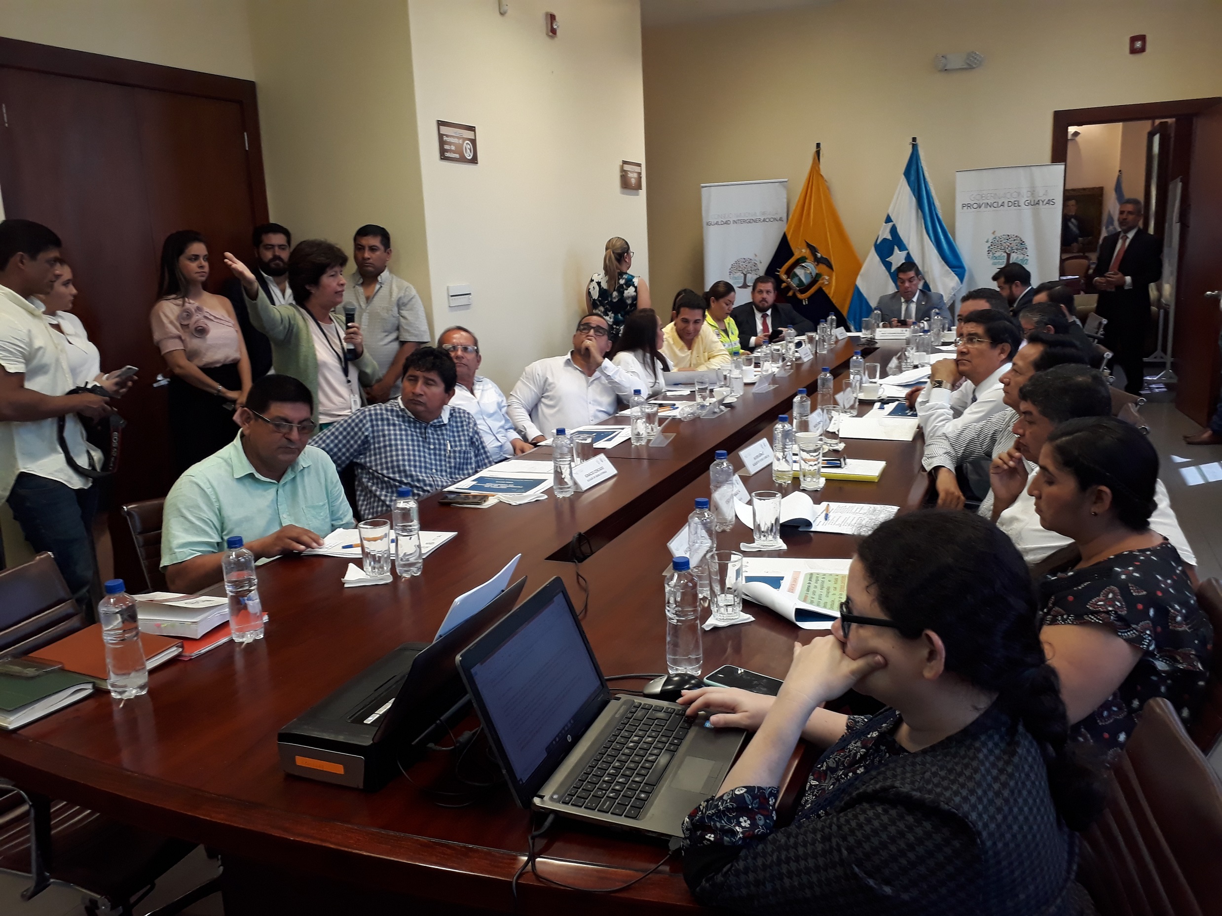 Diez de los alcaldes presentes componen la zona denominada Cuenca Alta del Río Guayas que comprende los cantones El Empalme, Balzar, Colimes, Santa Lucía, Palestina, Pedro Carbo, Isidro Ayora, Lomas de Sargentillo, Nobol, Daule y tres más de la Cuenca Baja, como son Durán, Juján y Balao. Cabe mencionar también que al finalizar la jornada el Gobernador Ledesma, una representante del CNII y los alcaldes participantes suscribieron un acta de compromiso para trabajar en la garantía de derechos a nivel territorial, además se anticipó una reunión similar para el miércoles de la presente semana con los alcaldes restantes.