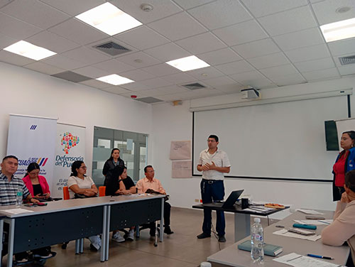 En Manabí, junto a Defensoría del Pueblo facilitamos el taller sobre enfoque de derechos, de los grupos de atención prioritaria en el marco del curso de rol de garantía y protección de derechos.